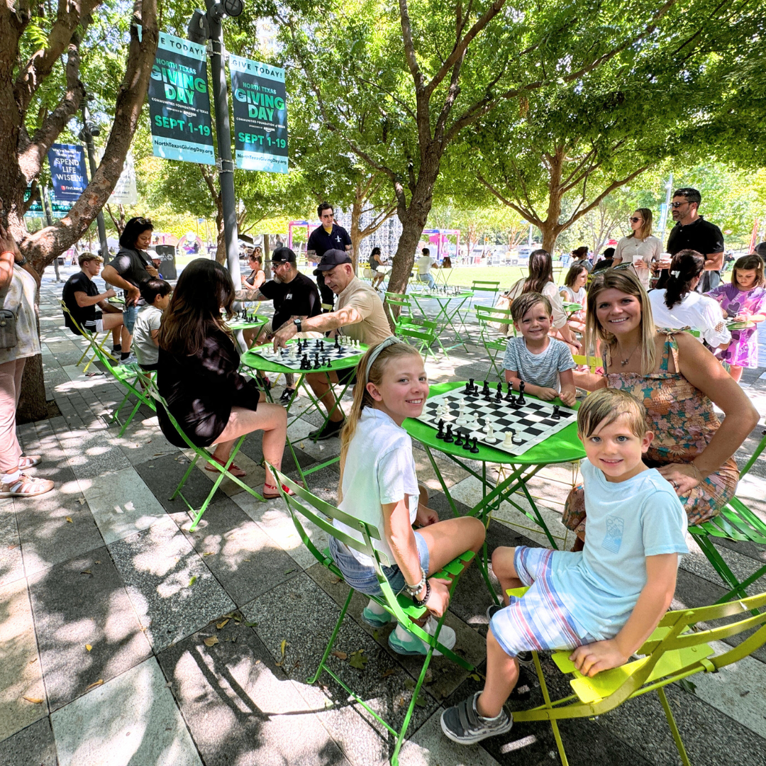 Texas Chess Center is excited to partner with Klyde Warren Park to bring a focused 20-minute lesson on chess strategies, techniques, or specific aspects of the game, followed by an open play session where they can practice what they've learned, play against others, and enjoy the game in a relaxed environment. It is designed for chess enthusiasts of all levels, offering a blend of structured learning and casual play.