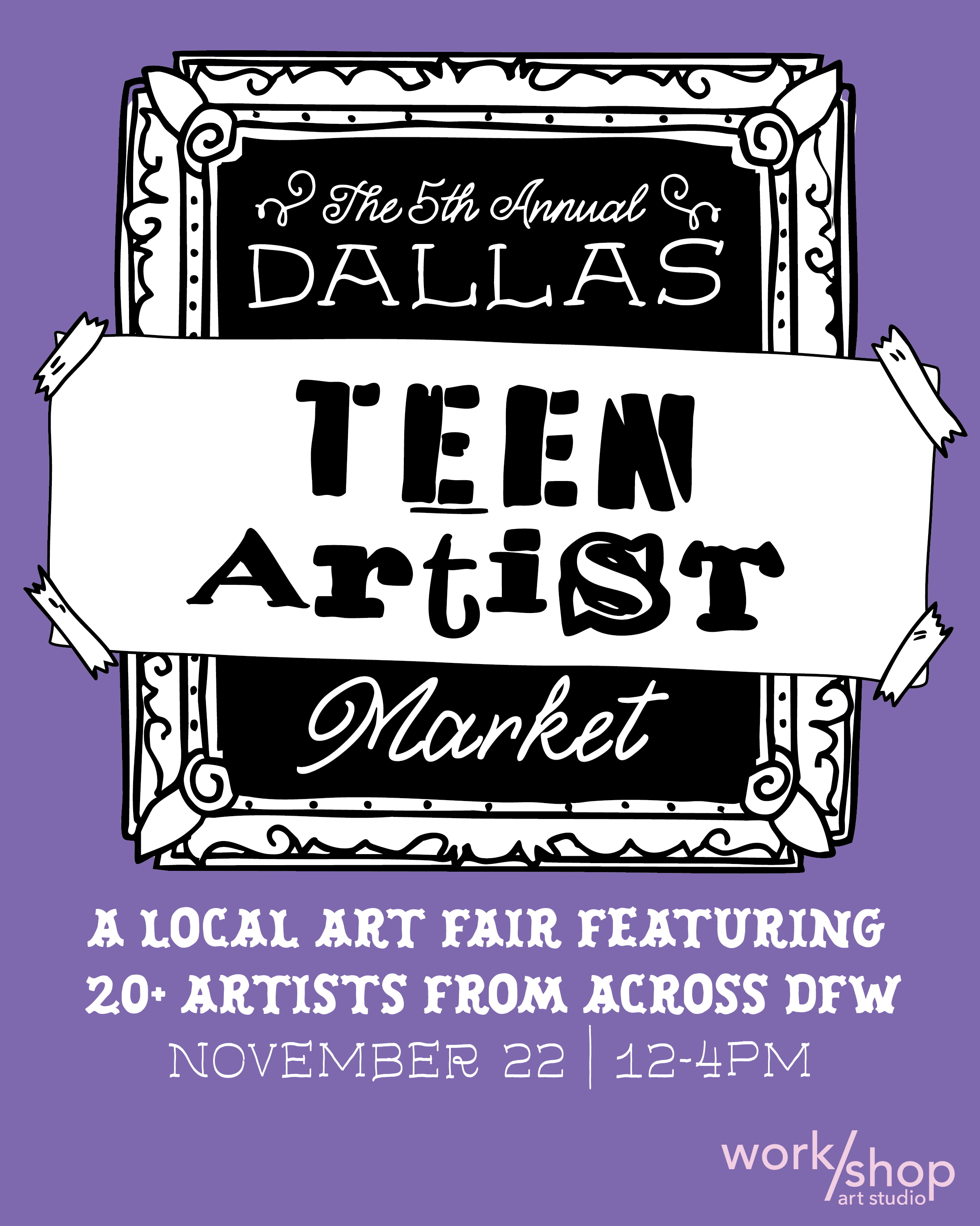 The Teen Artist Market is a program of work/shop, a nonprofit art studio in Dallas empowering the creative vision of young artists. Learn more about the featured artists of this year’s market and our work at www.workshopdtx.com!