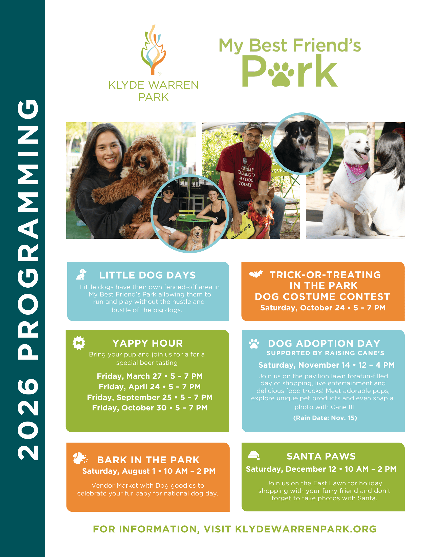 - Aggressive behavior (dogs and humans) has no place at Klyde Warren Park.